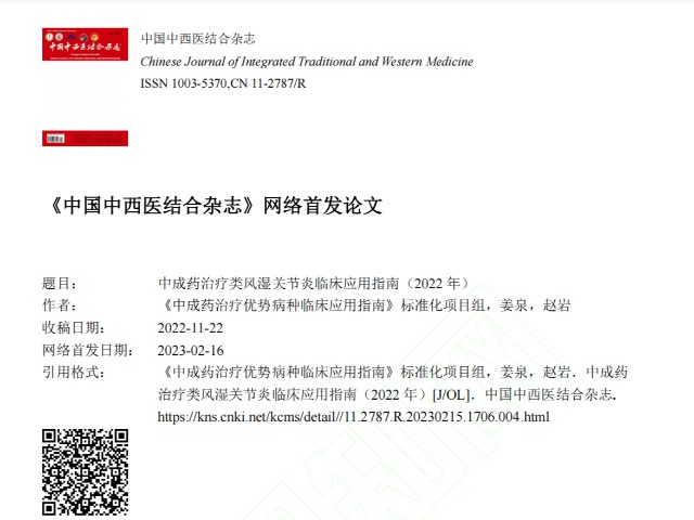 ȨÍþÐû²¼£¡¡¶ÖгÉÒ©ÖÎÁÆÀà·çʪÊàŦÑ×ÁÙ´²Ó¦ÓÃÖ¸ÄÏ£¨2022 Ä꣩¡·ÕýʽÐû²¼£¬£¬£¬£¬£¬£¬2121·Ç·²ÆßƬΪÖÎÁÆRAµÄÍÆ¼öÒ©ÎïÈÕÆÚ£º2023-03-20